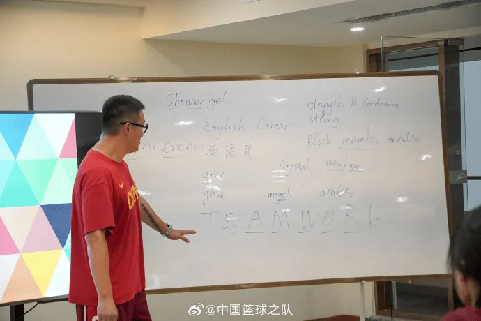 本周的训练课余,教练组特别准备了一次“英语角”活动,得到了队员们的积极响应。从热血励志语录、实战篮球术语到日常口语,实用性和趣味性拉满。有奖问答环节全员抢答,笑声和掌声停不下来。